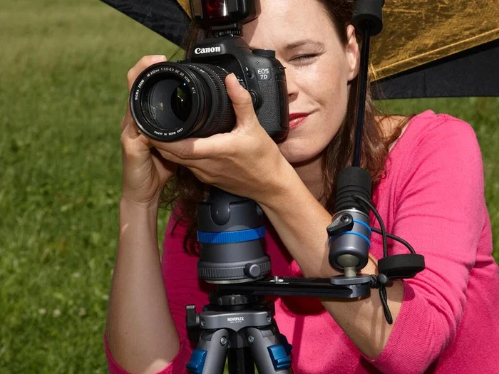 - Ein Fotostativ.