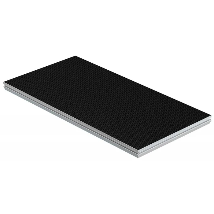 Das DECK750 Bühnenpodest wiegt nur 32 kg und verfügt über eine Tragfähigkeit von 750 kg/m². Es zählt zu den stärksten und leichtesten Podesten auf dem Markt. Die spezielle „HEXA“-Antirutsch-Oberfläche sorgt für maximalen Grip und lassen das Bühnenpodest auch outdoor-fähig werden.