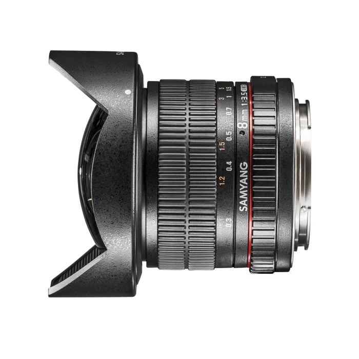 Die Brennweite von nur 8 mm ermöglicht eine Naheinstellgrenze von 30 cm. Es lassen sich aufregende Weitwinkelbilder, bereits kurz vor der Frontlinse beginnend, in brillanter Schärfe festhalten. Die hohe Lichtstärke von 1:3,5 ermöglicht auch bei weniger günstigen Lichtverhältnissen hervorragende Aufnahmen. Das Objektiv ist für die DSLR Kamera mit APS-C Sensor optimiert. Eine Gegenlichtblende verhindert seitlich einfallendes Streulicht und Linsenreflexionen. Die Glaslinsen des Objektivs sind vergütet und bringen einen hervorragenden Kontrast sowie ein sehr gutes Schärfeverhalten. Die besonders hochwertige Optik des Objektivs sorgt für optimale Bildergebnisse mit ausgewogener Farbwiedergabe.