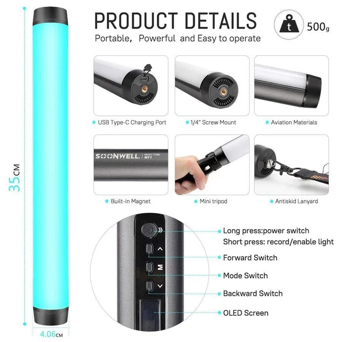 - Helligkeit bei 5.600K: 1917 Lux (bei 30cm) / 172 Lux (bei 1m)