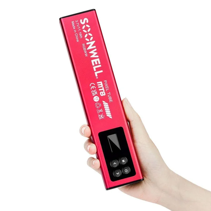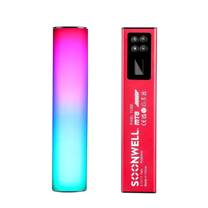 Die Soonwell MT8 ist ein kleiner Allrounder für mobile Einsätze. Die Leuchte liefert weißes Licht mit einem Temperaturbereich von 2.600K bis 6.000K, sowie buntes Licht. Eine breite Palette an Effekten wie Kerzenlicht, Polizeilicht oder TV-Flimmern ist bereits vorinstalliert. Das Panel ist in 24 Pixel unterteilt, wodurch noch weitere Effekte möglich sind. Der Akustiksensor kann eine dynamische Beleuchtung erzeugen, die sich der Musik anpasst.