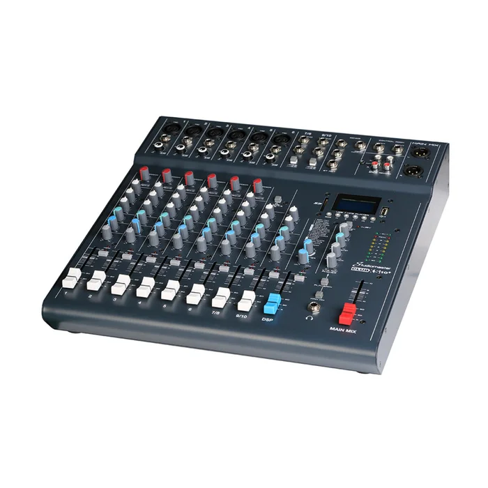 Sie umfasst kompakte und tragbare Mischpulte mit 6 bis 16 Eingängen, Bluetooth-Konnektivität, integrierten DSP-Effekten und USB/SD-Karten-Wiedergabe- und Aufnahmefunktionen. 3-Band-EQ, 2 Aux-Kanäle, symmetrische Mic/Line-Anschlüsse, Kompressorsteuerung und ein praktischer Mute-Schalter für alle Mic- und Line-Eingangskanäle sowie 2-Band-EQ mit 2 Aux-Kanälen für beide Stereokanäle. Es gibt auch symmetrische XLR-Anschlüsse für die Hauptausgänge, Klinkenausgänge für Zusatzgeräte und Kontrollraum sowie Phonoanschlüsse für Aufnahme und Wiedergabe.