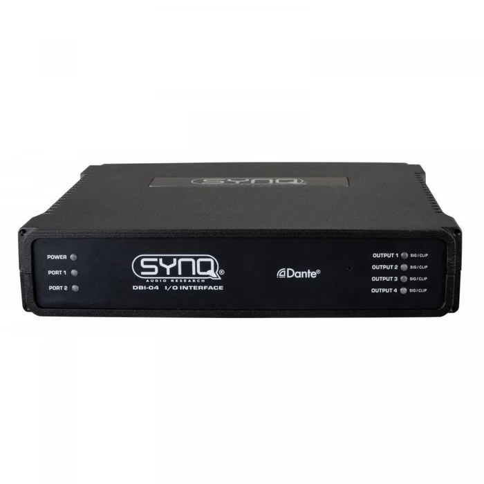 Das DBI-04 von Synq Audio ist eine hochwertige Analog-/DANTE®-Netzwerk-Audio-Bridge für die Festinstallation mit 4 analogen Ausgängen und GPIO-Anschlüssen.