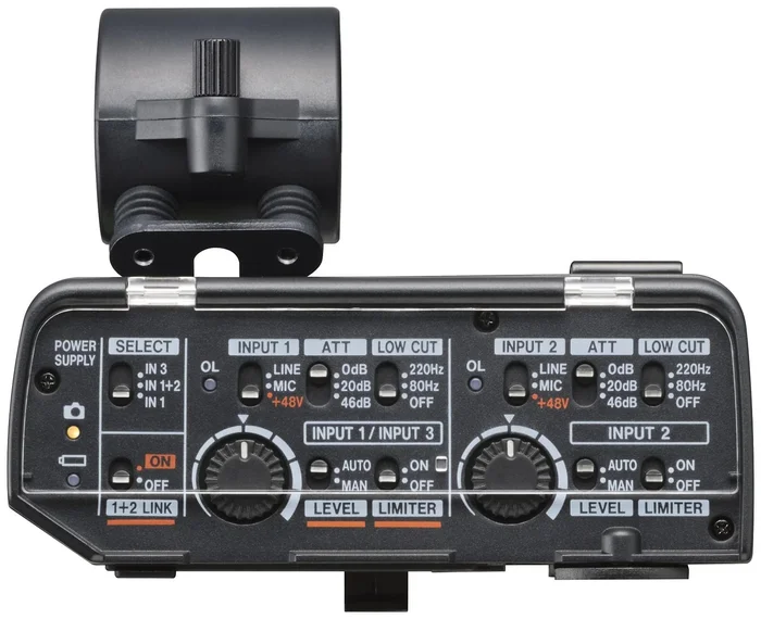 Der CA-XLR2d ist so flexibel, dass Sie ihn mit den Mikrofonen und den Gerätschaften verwenden können, die Sie für Ihre jeweilige Filmsession benötigen. Der Blitzschuh an der Oberseite beispielsweise ist unempfindlich gegen Vibrationen, geräuscharm und kann Ihr Lieblingsmikrofon oder einen drahtlosen Empfänger oder Sender aufnehmen. Zwei XLR/TRS-Eingänge und ein 3,5-mm-Stereo-Mini-Eingang stehen für praktisch alle dynamischen oder Kondensator-Handmikrofone, Richtrohre, Lavalier- oder andere Mikrofone zur Verfügung.