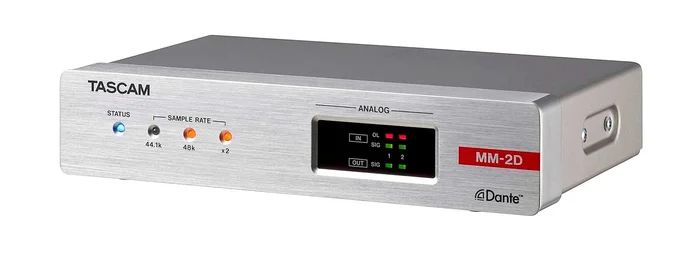 Der MM-2D ist Teil der „Dante Compact Processor Series“ von Tascam, die verschiedene kompakte Audiowandler mit halber Rackbreite für Dante/AES67-Netzwerke umfasst. Die Modelle fügen Dante-Audionetzwerken in öffentlichen Einrichtungen, Rundfunkstationen, Aufnahmestudios oder exklusiven Wohnumgebungen problemlos zusätzliche Eingänge und Ausgänge für Mikrofon/Line- oder AES/EBU-Signale hinzu und können beliebig kombiniert werden.