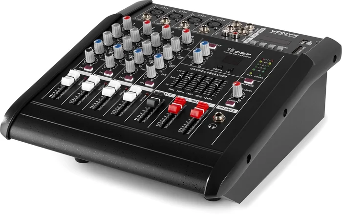 Dieser 5-Kanal-Mixer enthält einen 2x 500W-Verstärker. Damit erhält der Benutzer ein komplettes Gerät als Basis für dieses Setup. Mit 4 Mikrofon- und Line-Eingängen ist er ideal für Live-Performer auf der Bühne. 16 digitale Effekte geben Ihnen viel Raum für die Feinabstimmung Ihres Sounds.