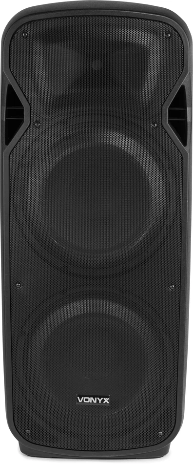 Ein professioneller 15-Zoll-Doppellautsprecher mit BT-Empfänger, MP3-Player, leistungsstarkem Mitteltieftöner und einem dynamischen Horn mit hoher Kompression für eine hervorragende Klangwiedergabe. Unbegrenzte Flexibilität bei der Aufstellung dank der BT-Technologie. Der MP3-Player spielt Audiodateien über USB-Stick oder SD-Karte ab. Der Slave-Ausgang ermöglicht die Verkettung von weiteren Lautsprechern. Das robuste, stoßfeste, geformte und leichte Gehäuse wird durch ein stabiles Metallgitter ergänzt, das die Tieftöner schützt. Dieser Doppel-Aktivlautsprecher kann als Standalone-Lautsprecher verwendet werden und ist ideal für den Einsatz in Bars, Restaurants, kleinen Theatern und Hallen, Fitness- und Konferenzräumen sowie auf Bühnen.