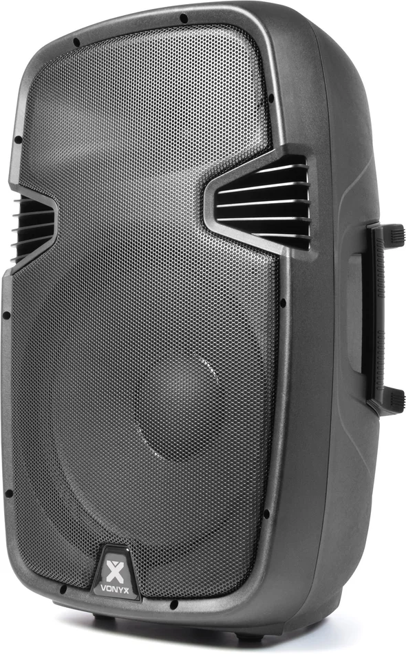 Eine 15-Zoll-PA-Box in einem robusten ABS-Gehäuse mit einem hochwertigen 800-W-Mixer/Verstärker, einem leistungsstarken Mid-Low-Woofer und einem dynamischen Horntreiber mit hoher Kompression für eine hervorragende Klangwiedergabe. Der Line-Ausgang ermöglicht die Verkettung weiterer Lautsprecher. Das robuste, geformte und leichte Gehäuse wird durch ein stabiles Metallgitter ergänzt, das den Tieftöner schützt. Diese aktive Einheit kann als Standalone-Lautsprecher eingesetzt werden und ist ideal für den Einsatz in Bars, Restaurants, kleinen Theatern und Hallen, Fitness- und Konferenzräumen sowie auf Bühnen.
