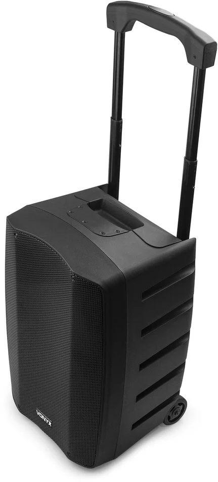 Mit dem VSP200 erhalten Sie ein tragbares Soundsystem der Spitzenklasse, das Ihr Klangerlebnis auf ein noch nie dagewesenes Niveau hebt. Der VSP200 verfügt nicht nur über einen integrierten Bi-Amp-Verstärker, sondern auch über einen praktischen BT-Empfänger, der nahtloses Musikstreaming von jedem Smartphone oder Tablet ermöglicht. Darüber hinaus verfügt dieses System über einen benutzerfreundlichen USB-Anschluss und einen SD-Steckplatz, so dass MP3s mühelos abgespielt werden können. Dank des wiederaufladbaren Akkus eignet sich das System für zahlreiche Anwendungen wie PA-Einsätze und Straßenauftritte. Die beiden mitgelieferten UHF-Mikrofone geben Ihnen völlige Freiheit auf der Bühne.Die Rückseite dieses Audiosystems garantiert Anschlussmöglichkeiten, Vielseitigkeit und Funktionalität. Zwei Mikrofonanschlüsse mit einem 3-poligen XLR-Combo-Eingang stehen zur Verfügung, um alle Mikrofonanforderungen zu erfüllen. Zusätzlich steht ein Aux-Line-Eingang für den Anschluss externer Audioquellen, wie z. B. Smartphone oder Laptop, zur Verfügung. Die MP3-Steuerungseinheit vereinfacht die Navigation durch Ihre Musikbibliothek, während eine Batterieanzeige den Batteriestatus anzeigt und das System in einem robusten Gehäuse mit Rollen und ausziehbarem Griff untergebracht ist.