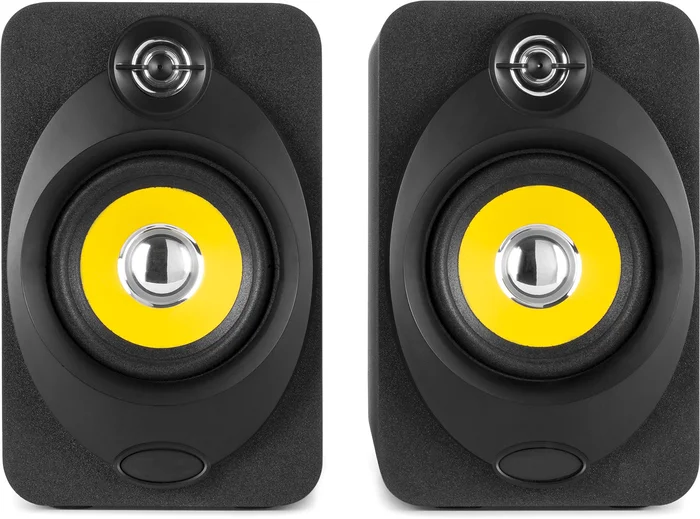 Die XP40 Aktivmonitore mit MP3-Player wurden entwickelt, um hohe Klang- und Konstruktionsqualität zu einem günstigen Preis zu bieten. Diese Monitore sind in hochdichten MDF-Gehäusen untergebracht, die speziell entwickelt wurden, um Geräusche und Resonanzen zu reduzieren. Die Lautsprecher sind in modernem Schwarz mit gelbem Konus gehalten und passen in jedes Heim, Studio oder andere Räumlichkeiten. Dank der integrierten Verstärkung ist kein separater Verstärker erforderlich. Mit einem 2 x 40 W Class-D-Digitalverstärker sind diese Lautsprecher mehr als in der Lage, einen Raum mit Musik zu füllen. Ein benutzerfreundliches Bedienfeld ist auf der Oberseite des aktiven Lautsprechers integriert. Schließen Sie den aktiven Lautsprecher einfach an das Stromnetz an und verbinden Sie den anderen Lautsprecher über das mitgelieferte Kabel.