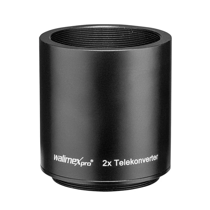Zwischen Kamerabody und Objektiv montiert verlängert der Telekonverter die Brennweite des angesetzten Objektivs um das 2-fache. Er erhöht beispielsweise die Brennweite des walimex 500/6,3DX Spiegeltele T2 auf 1000mm. Physikalisch bedingt ergibt sich ein Lichtverlust von 2 Blenden. Der Konverter kann an allen Objektiven mit T2-Anschluss verwendet und über einen entsprechenden, bei uns erhältlichen Adapter an viele Spiegelreflexkameras angeschlossen werden.