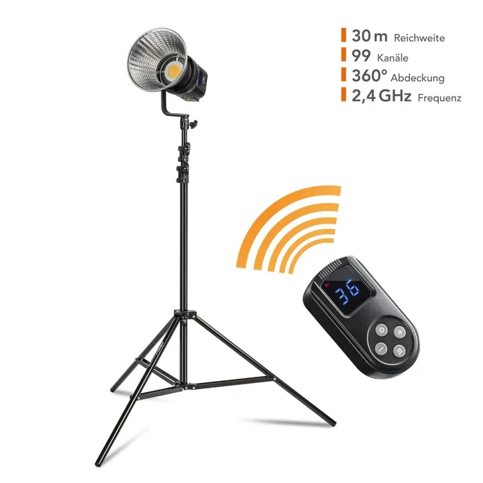 Diese kompakte und leichte LED-Leuchte begleitet Sie zu Shootings und Drehs und arbeitet sowohl mit Netzstrom, als auch per Akku (1x V-Mount, nicht enthalten). Mit ihrem Gewicht von nur 1.031 Gramm und starken 120 Watt Leistung ist sie hoch transportabel und damit ein großes Plus für Ihren Beleuchtungs-Fuhrpark. Gesteuert wird die Leuchte am Gerät oder per 2,4 GHz-Fernbedienung bis 30 m Entfernung. Dank 99 Kanälen können Sie sie störungsfrei auch in größeren Setups ansteuern.