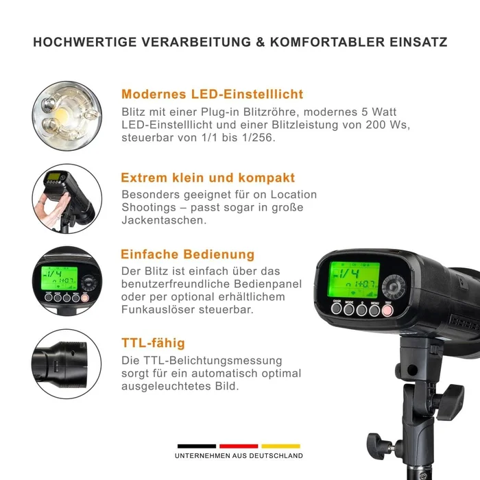 - Blitzleistung: 200 Ws