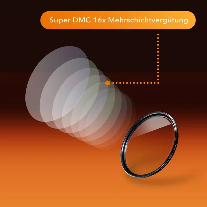 Zwei Schichten Nano-Coating sorgen für den klaren Durchblick: Staub findet kaum Halt, um sich auf dem Filter abzusetzen, und Wasser sowie Öl perlen einfach ab. Im Gegensatz zu unversiegelten Gläsern verlaufen Tropfen also nicht auf dem Glas des Filters wie auf einer Windschutzscheibe und müssen abgewischt werden, sondern bleiben halbrund und laufen selbständig ab.