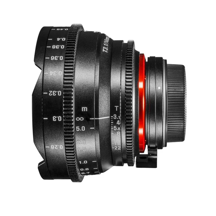 Die Linsen-Konstruktion aus 13 Linsen in 12 Gruppen wurde in einen robusten Tubus aus Aluminium verbaut. Die notwendigen Einstellungen am Follow Focus- oder Blendenring sind stufenlos und lassen sich an alle Follow Focus Systeme mit 0,8 mm Zahnkranz befestigen. Die 9 Blendenlamellen des 14 mm Cinema Objektivs sorgen für ein nahezu kreisrundes und schönes Bokeh.